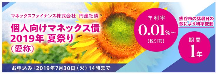 「マネックス債 2019年 夏祭り」の現時点の利率についてメールで連絡がありました