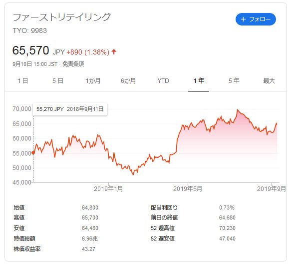 じゃあ買えよと思いますが、1単元(100株)を買うのに655万円かかるので相当手が出しにくいです。