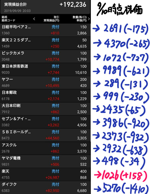 楽天証券での日本株の実現損益履歴を見ていたら衝撃の事実が分かりました。