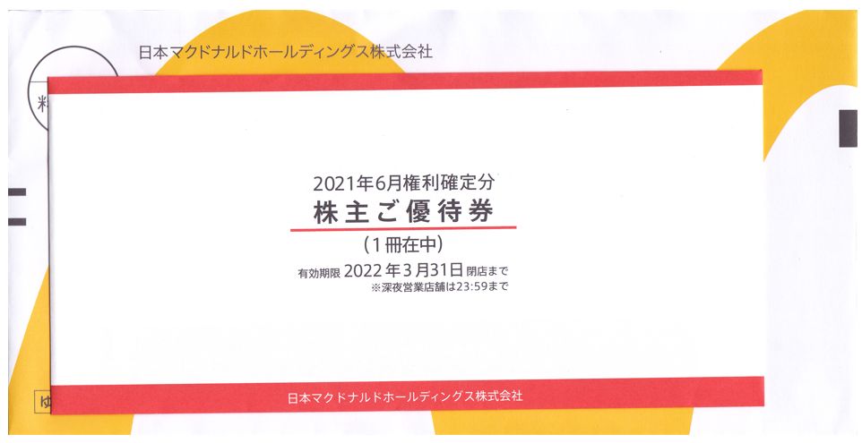 毎年6月30日・12月31日現在の株主名簿に記載かつ継続1年以上の株式保有で、「マクドナルドで使える優待食事券」がもらえます。