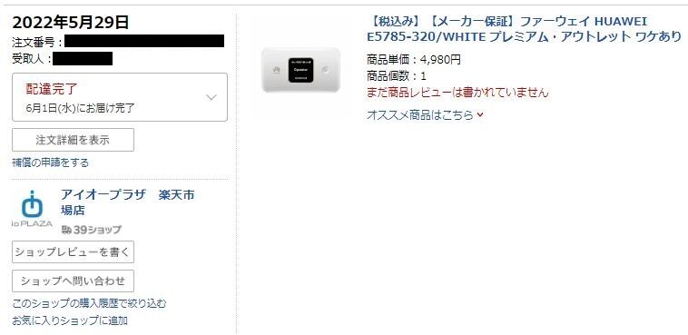 【楽天市場】「HUAWEI E5785-320」訳アリ品が4,980円(7/12まで)