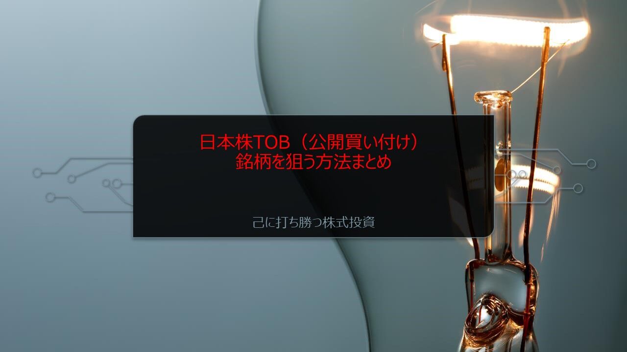 市場価格に対してプレミアムをつけ買い付けがされるTOBですが、事前に購入しておけば大儲けを狙えます。今回TOB銘柄を狙う方法をまとめました。