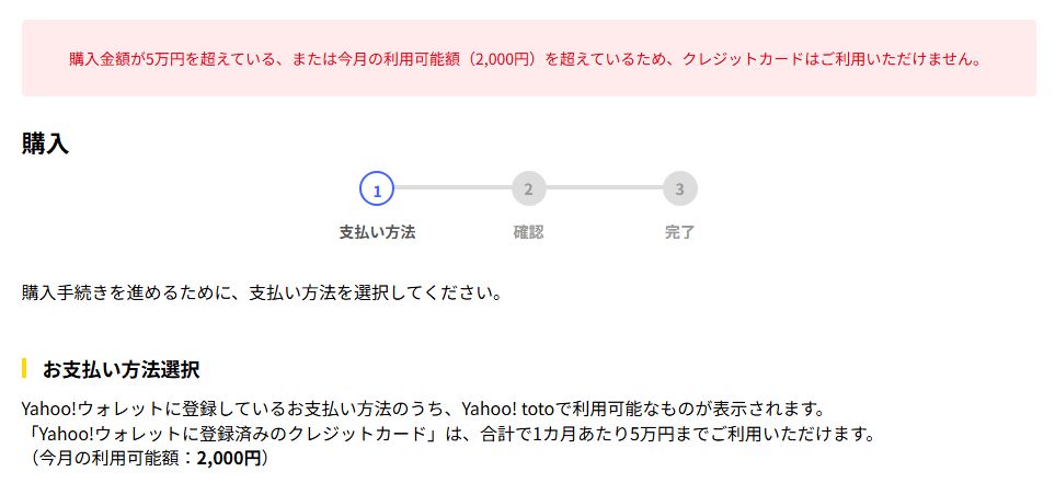 「Yahoo!toto」でクレカ決済できるのは月5万円まで
