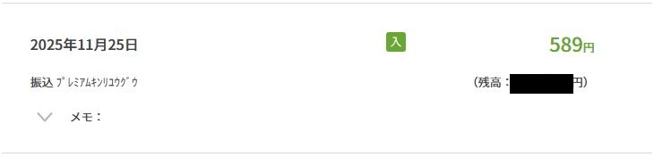 プレミアム金利優遇の利息入金時期は毎月下旬(24日~25日)になります。