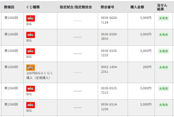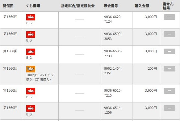 スポーツくじ公式サイトでBIG50口を購入しました。