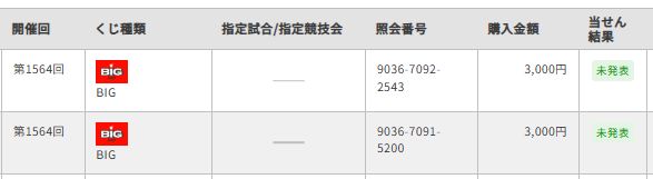 スポーツくじ公式サイトでBIG20口を購入しました。