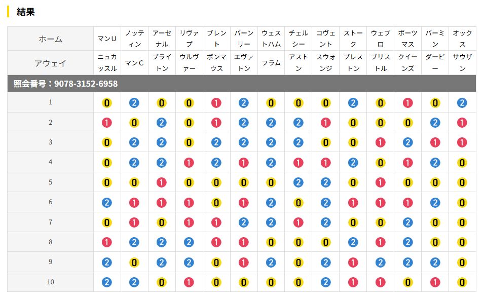 | Yahoo! toto | 9078-3152-6958(10口) | はずれ |