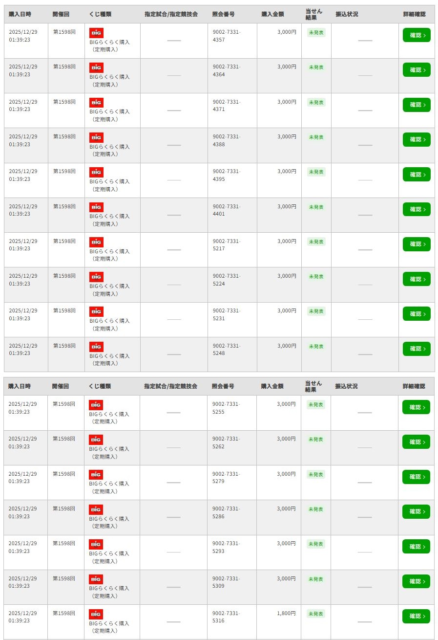 2025年最後ということで公式サイトのBIGらくらく購入で上限の166口を購入してみました。