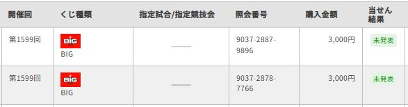 2025/10/01にサッカーくじ公式サイトで購入した第1574回BIGで2等当せんしました。