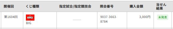 過去のサッカーくじBIGの購入結果は以下になります。