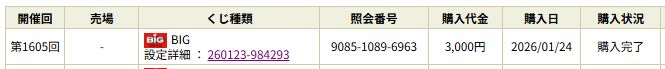 【第1605回BIG】くじ結果と1等くじの判定