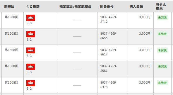 2025/10/01にサッカーくじ公式サイトで購入した第1574回BIGで2等当せんしました。