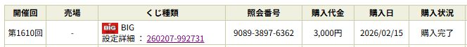 【第1610回BIG】くじ結果と1等くじの判定