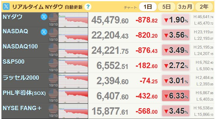2025年10月10日に対中関税の大幅引き上げ示唆で久々の大暴落になりました。
