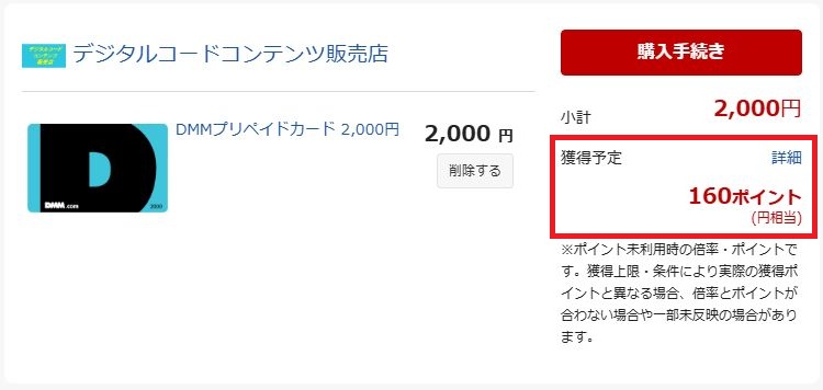 | 楽天市場デジタルコードコンテンツ販売店 DMMプリペイドカードを購入 | クレジットカード 楽天ポイント | 楽天SPU対象のためポイント還元率が高い。 割引クーポンあり |