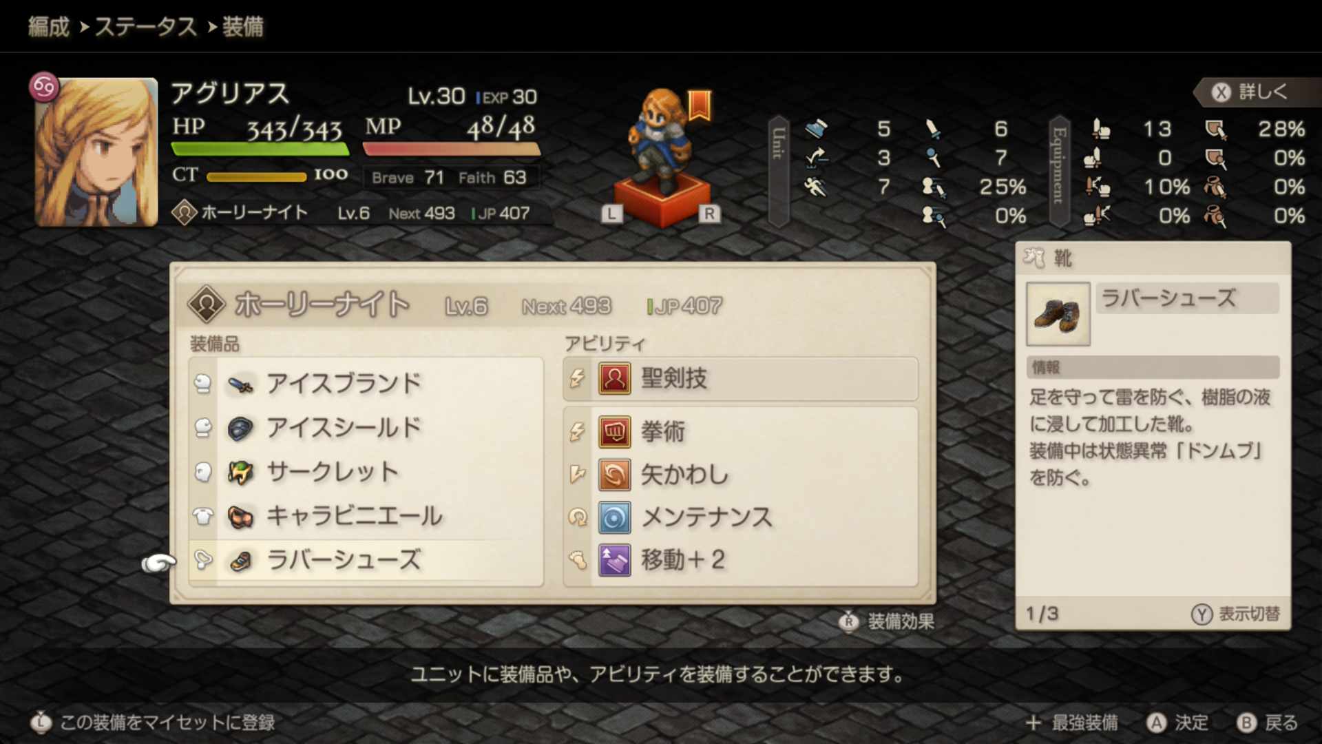 | 必須装備 (ラムザ・アグリアス) | アイスシールド(氷吸収、炎半減) ラバーシューズ(雷無効) |