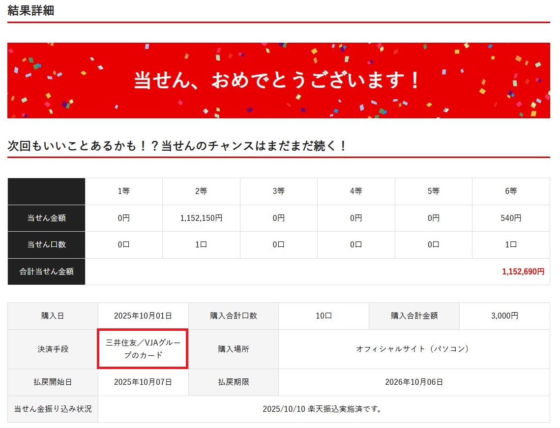 当せん金額は自動で銀行に振り込んでくれるのが良いですね。